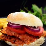Cut the bread rolls in halves. Place the Chicken on one half, drizzle more sauce if you wish. Peri-Peri sauce is also great. Place some sliced onion and tomato on top and cover with the other half of the bread roll.