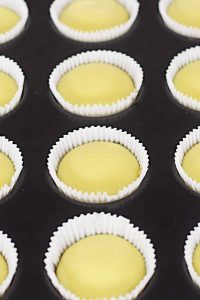 Fill each liner with a tablespoon of the tennis biscuit filling. Use an empty liner and press down the filling with your fingers