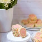 Roll out each piece, about 20cm x 17cm rectangular shape on parchment paper. You can dust some flour if difficult to roll out. Place the pink piece on top of the white piece. You can give it a quick, gentle roll with the rolling pin