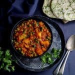 Keyword: potato and pea curry, potato curry, south african indian food, vegetarian